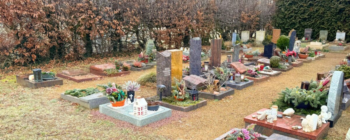 - Die Position der Grabstätte auf dem Friedhof kann nicht gewählt werden. Die Belegung erfolgt im jeweiligen Grabfeld der Reihe nach.